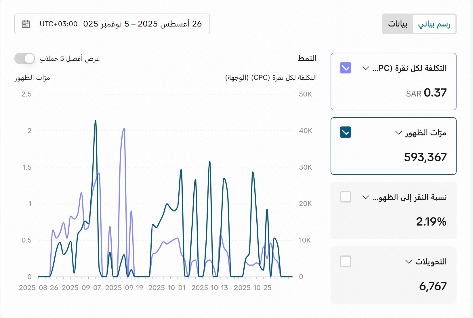 النتائج تختلف حسب نوع الخدمة وهدف الحملة. بعض النتائج، مثل زيادة التفاعل، ممكن تشوفها بسرعة. لكن النتائج الكبيرة، مثل زيادة المبيعات والانتشار، تاخذ وقت أطول شوي، وعادة نشوف تحسن ملحوظ خلال أول 3 إلى 6 شهور.